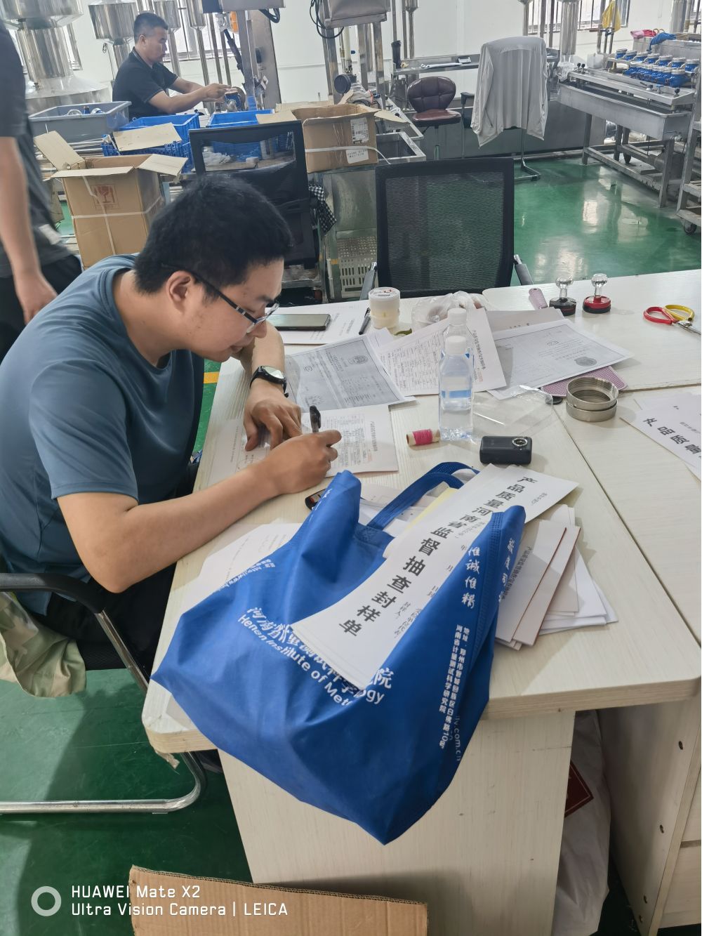 ?2023年 6月14日河南省市場監(jiān)督局委托河南省計量測試科學(xué)研究院付江紅、王偉鵬到商丘市清源儀表有限公司,對旋翼式冷水表、IC卡智能水表、電子遠傳水表進行年度定期抽檢工作。在商丘市清源儀表有限公司的積極配合下,保證抽樣的隨機性、真實性。在日常生產(chǎn)中,商丘市清源儀表有限公司嚴(yán)把質(zhì)量關(guān),做到每只出廠水表都符合國家質(zhì)量要求。